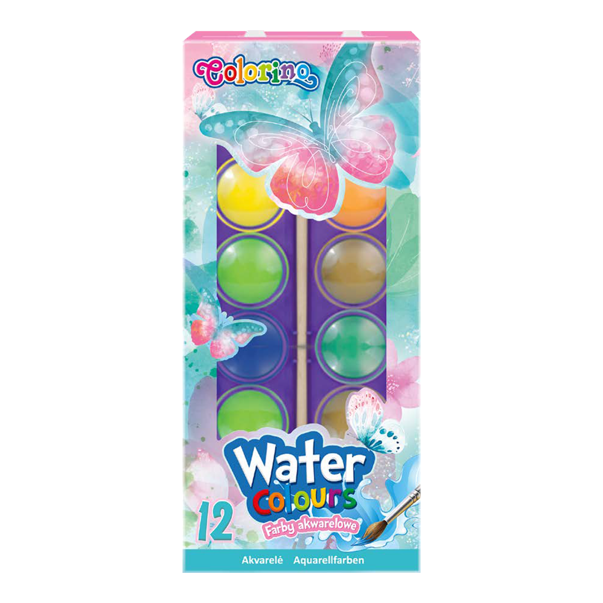 Design s jemnými motivy motýlů potěší všechny malé slečny, které rády sní a toulají se světem fantazie. Vodové barvy mají vysoký obsah pigmentu. Díky tomu jsou syté a krásně kryjí. Nepraskají ani při opakovaném používání. Jsou netoxické a bezpečné pro děti. Plastová kazeta je snadno uzavíratelná, dobře se přenáší. Součástí sady je kulatý štětec s přírodním chlupem. Baleno v papírové krabičce.