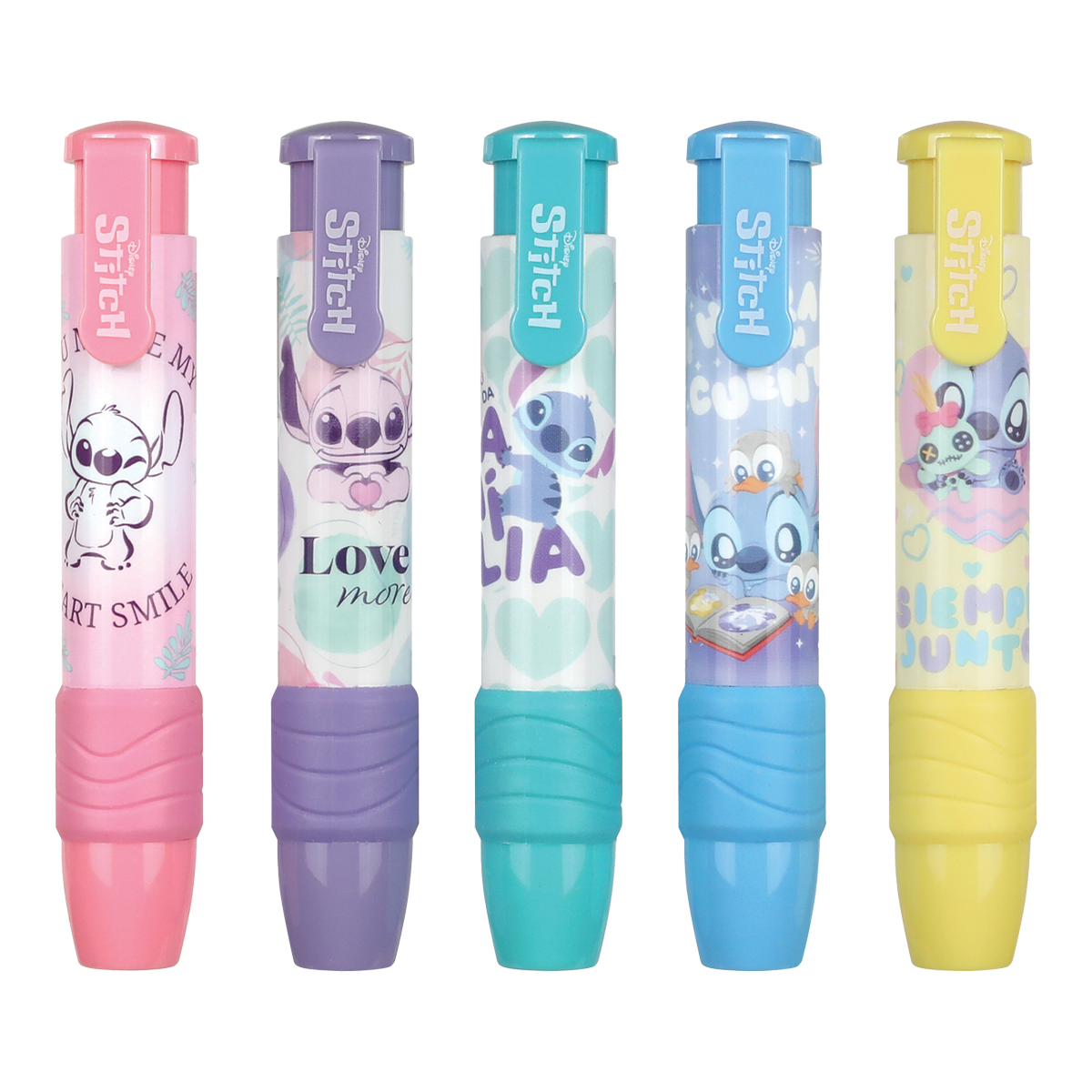 Přeneste se do hravého světa z dílny Walta Disneyho a nechte se okouzlit roztomilým Stitchem – mimozemským tvorečkem, který připomíná malou koalu. Praktická vysouvací pryž v podobě tužky, je nejen krásná na pohled, ale také neuvěřitelně pohodlná na používání. Díky chytré mechanice se pryž snadno vysouvá a zajišťuje tak rychlé a přesné gumování. Barevně sladěná stiskací část působí elegantně a celkový design si zamilujete na první pohled. Každý kus je malým kouskem radosti do penálu. Cena za 1 ks, výběr z mixu barev.
