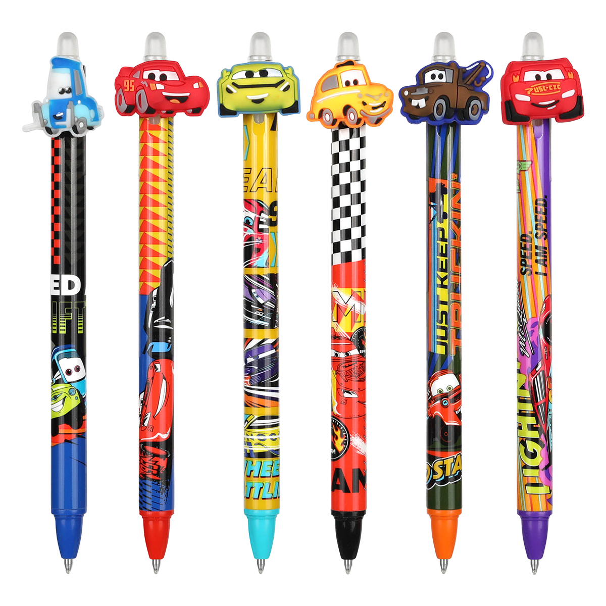 Praktická gumovatelná pera pro děti s měkkou koncovkou a motivy postaviček - aut z oblíbeného filmu. Kvalitní inkoust lze v případě potřeby jednoduše vygumovat a přepsat.šířka stopy: 0,5 mmbarva náplně: modrá stiskací mechanika v klipudostupná náhradní náplň: 0,5 mm R37534PTR; 0,7 mm R34689000066 motivůobsah balení: 36 ks /displej