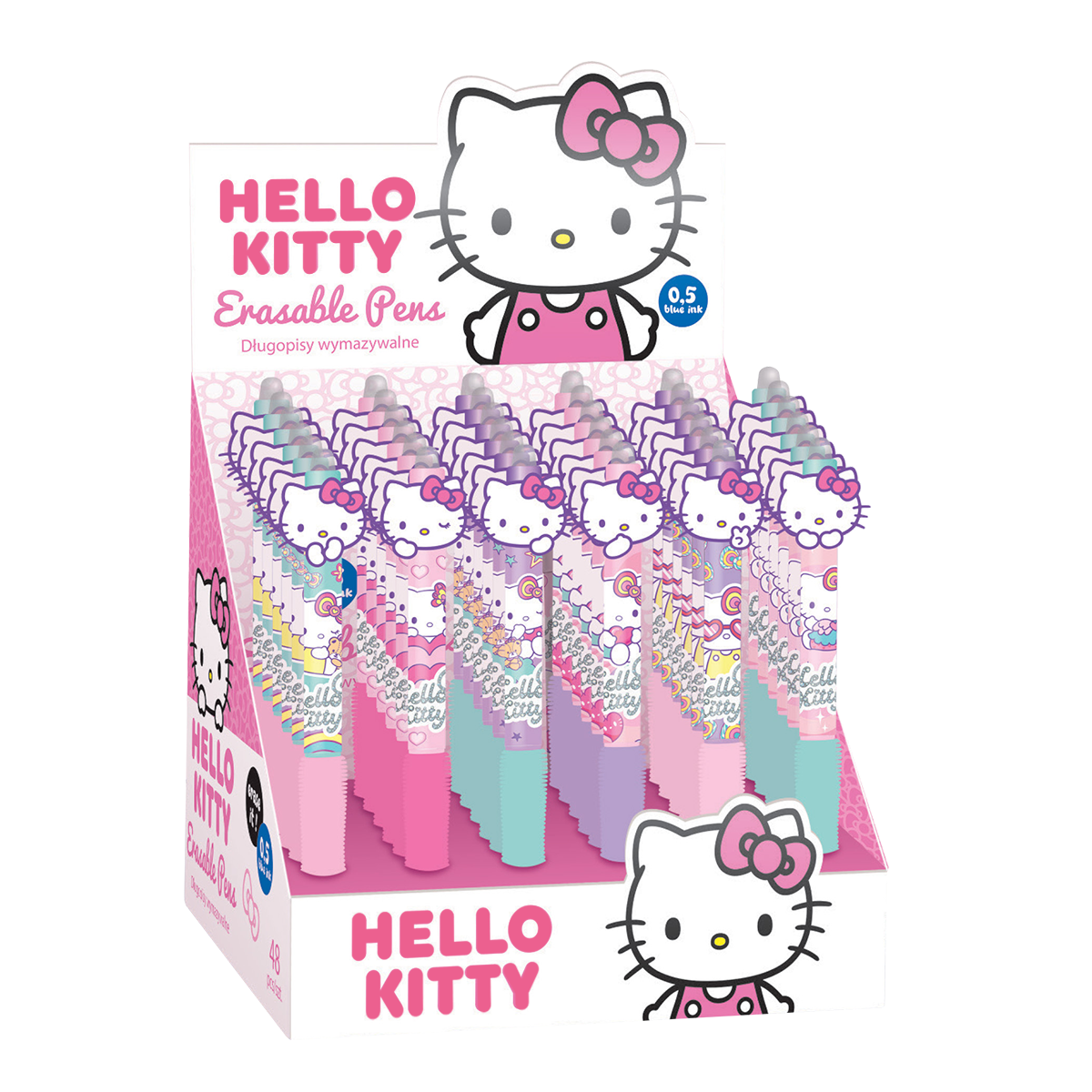 Kolekce gumovatelných per s barevným tělem a roztomilými motivy Hello Kitty. Příjemný pogumovaný grip zajistí pohodlný úchop každému školákovi.šířka stopy: 0,5 mmdostupná náhradní náplň: 0,5 mm R37534PTR; 0,7 mm R34689000066 motivůbarva náplně: modrá pogumovaný gripobsah balení: 36 ks/displej