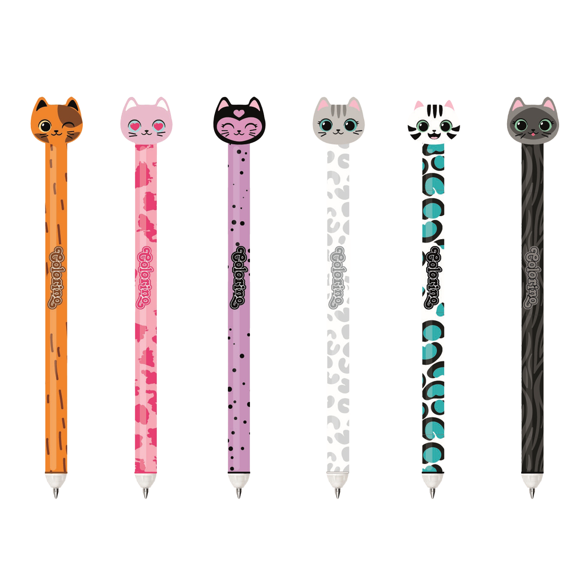 Gumovatelná pera s veselou koncovkou ve tvaru kočičí hlavy. Pro zapnutí pera jednoduše zatáhni za ocásek a můžeš se pustit do psaní.šířka stopy: 0,5 mmbarva náplně: modrástiskací mechanika ve tvaru ocáskudostupná náhradní náplň: 0,5 mm R37534PTR; 0,7 mm R34689000066 motivů kočičkyobsah balení: 36 ks/displej