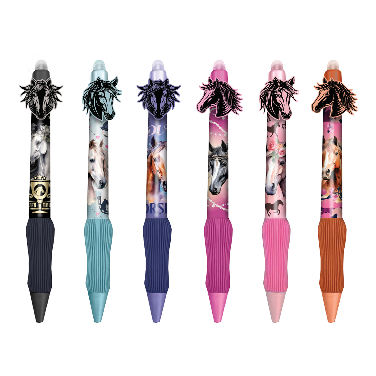 Kolekce gumovatelných per s krásnými motivy divokých koní. Výrazná stiskací mechanika, barevně sladěné tělo a na dotek příjemný pogumovaný grip, ti navíc zaručí pohodlné a radostné psaní.šířka stopy: 0,5 mmbarva náplně: modrástiskací mechanika s hlavou konědostupná náhradní náplň: 0,5 mm R37534PTR; 0,7 mm R34689000066 motivůobsah balení: 36 ks/displej