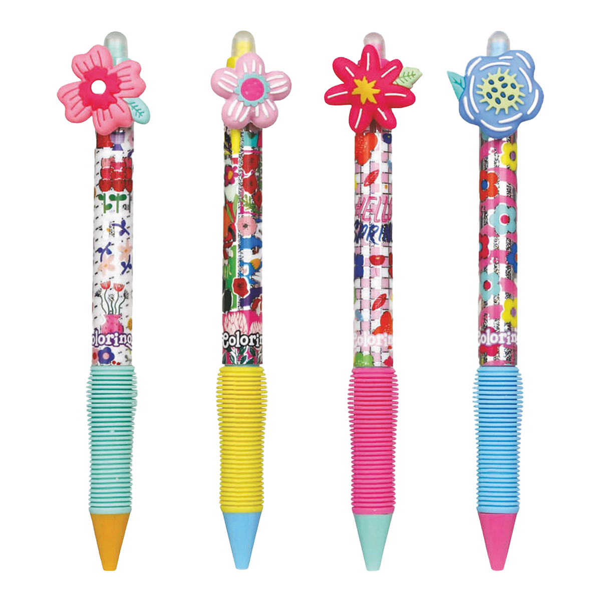 Kolekce gumovatelných per s barevným tělem a roztomilou ozdobou květin. Příjemný pogumovaný grip zajistí pohodlný úchop každému školákovi.šířka stopy: 0,5 mmbarva náplně: modrá stiskací mechanika v klipudostupná náhradní náplň: 0,5 mm R37534PTR; 0,7 mm R34689000064 motivy květinpogumovaný gripobsah balení: 36 ks /displej