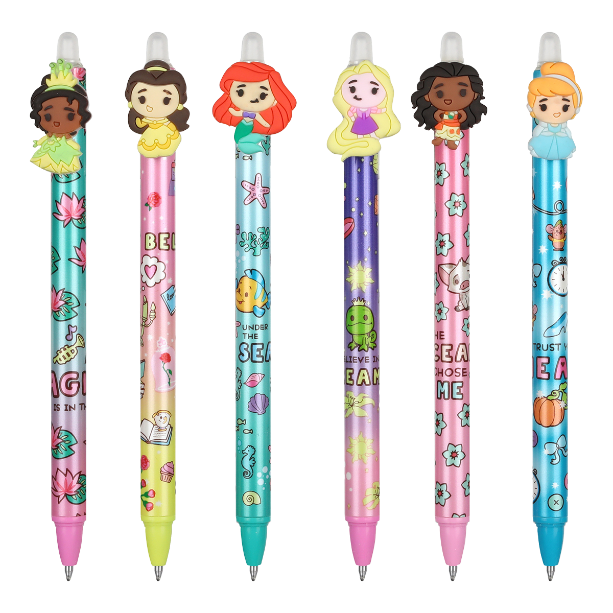Praktická gumovatelná pera pro děti s měkkou koncovkou a motivy nejznámějších princezen z dílny Walt Disney. Kvalitní inkoust lze v případě potřeby jednoduše vygumovat a přepsat.šířka stopy: 0,5 mmbarva náplně: modrá stiskací mechanika v klipudostupná náhradní náplň: 0,5 mm R37534PTR; 0,7 mm R34689000066 motivůobsah balení: 36 ks /displej