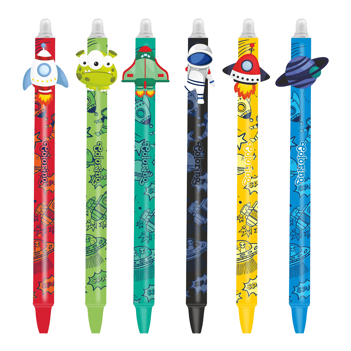 Praktická gumovatelná pera pro děti s vesmírnými motivy.šířka stopy: 0,5 mmbarva náplně: modrá stiskací mechanika v klipudostupná náhradní náplň: 0,5 mm R37534PTR; 0,7 mm R34689000066 motivůobsah balení: 36 ks /displej