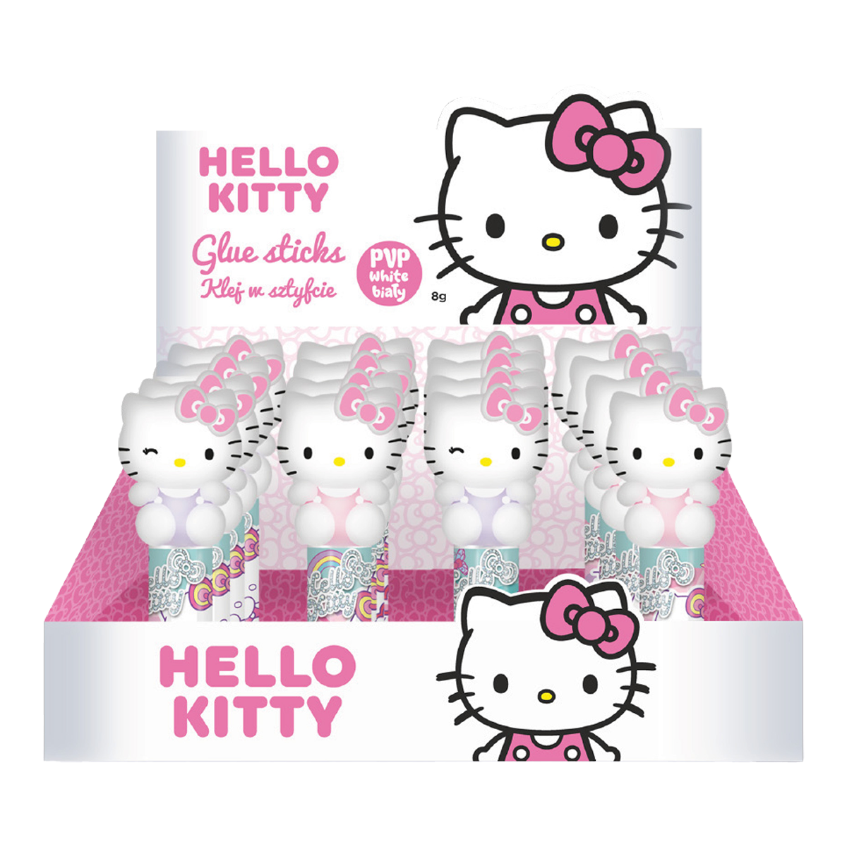 Tuhé tyčinkové PVP lepidlo s ozdobným víčkem Hello Kitty. Praktická velikost balení vhodná do penálu nebo školní tašky. Po zaschnutí transparentní.velikost: 8 gvhodné na: papír, karton, fotografieskvělá přilnavostatraktivní víčko Hello Kitty - 2 motivyobsah balení: 16 ks/displej