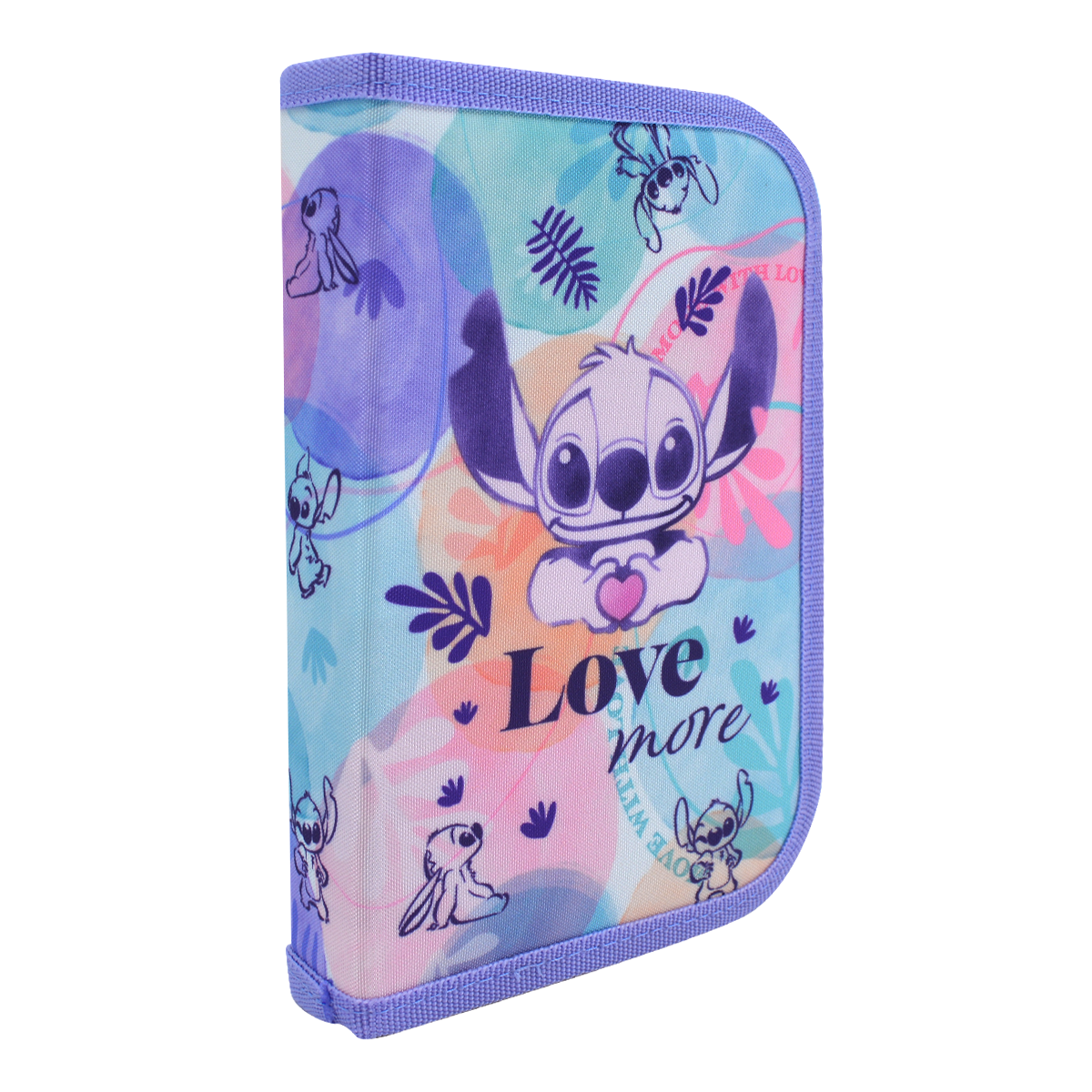 Rozkládací penál s přihrádkami pro psací výbavu a jiné školní doplňky. Dvě postranní chlopně jsou opatřeny transparentní kapsou, chránící obsah penálu. Odolný kovový zip je sladěný s kontrastním lemováním. Vybavení není součástí penálu.rozměry: š: 140 × v: 205 × h: 38 mmmateriál: 100 % polyester23 gumiček na psací potřeby, 3 gumičky na doplňky2 transparentní kapsy se školním rozvrhem a malou násobilkoukombinovatelný s kolekcí Stitch Pastelobsah balení: 1 ks
