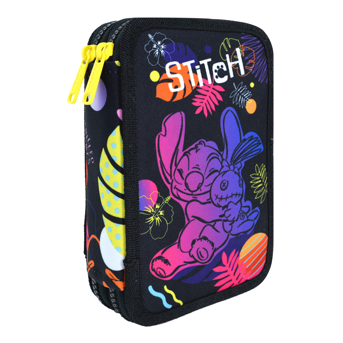Dvoupatrový penál s výrazným motivem Stitche. Odolný zip je sladěný s kontrastním s lemováním. Pevné ploché gumičky na psací potřeby drží tvar a nevytahávají se. Plně vybavený.rozměry: š: 125 × v: 195 × h: 55 mmmateriál: 100 % polyesterobsahuje: 18 × fixa, 12 × trojhranná pastelka, 1 × trojhranná tužka HB, 1 × gelový roller 0,7 mm, 1 × pravítko 15 cm, 1 × pryž, 1 × ořezávátkokombinovatelný s kolekcí Stitch Blackobsah balení: 1 ks
