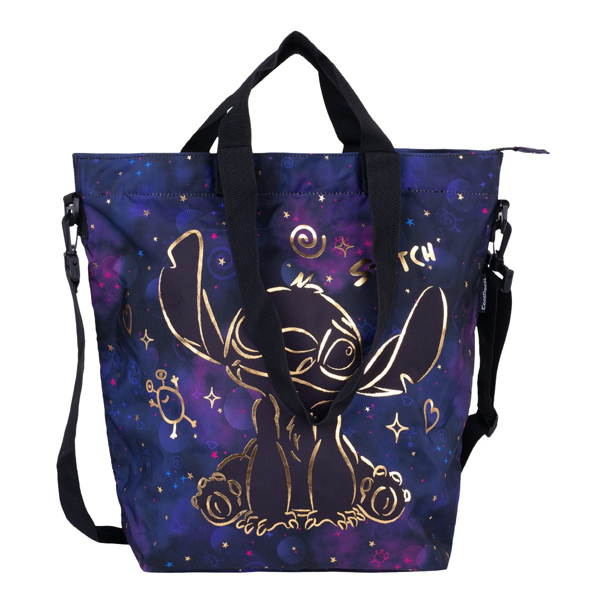 Veselá taška vhodná do školy, na odpolední aktivity nebo na víkendové dobrodružství mladé cestovatelky. Obsahuje 3 kapsy na zip – hlavní, malou vnitřní a vnější boční. Je voděodolná a pevná. Různé velikosti popruhů umožňují tašku nosit přes rameno, v ruce nebo ve stylu cross – body.rozměry: š: 48 × v: 42 × h: 17 cmmateriál: 100 % polyester3 kapsy na zipvoděodolná3 typy popruhůkombinovatelná s kolekcí Stitch Goldobsah balení: 1 ks