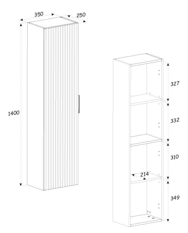 Dřevojas - Vysoká skříň DOS SV1D2 35 - N01 Bílá lesk / Úchytka T03 / L01 Bílá vysoký lesk / Levé 155995C