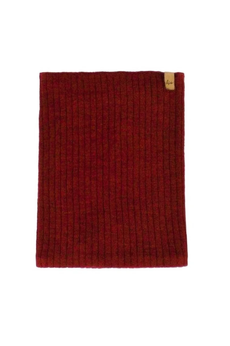 Dámská komínová šála. Model je poměrně dlouhý, což umožňuje jeho ohrnutí jako rolák. .
