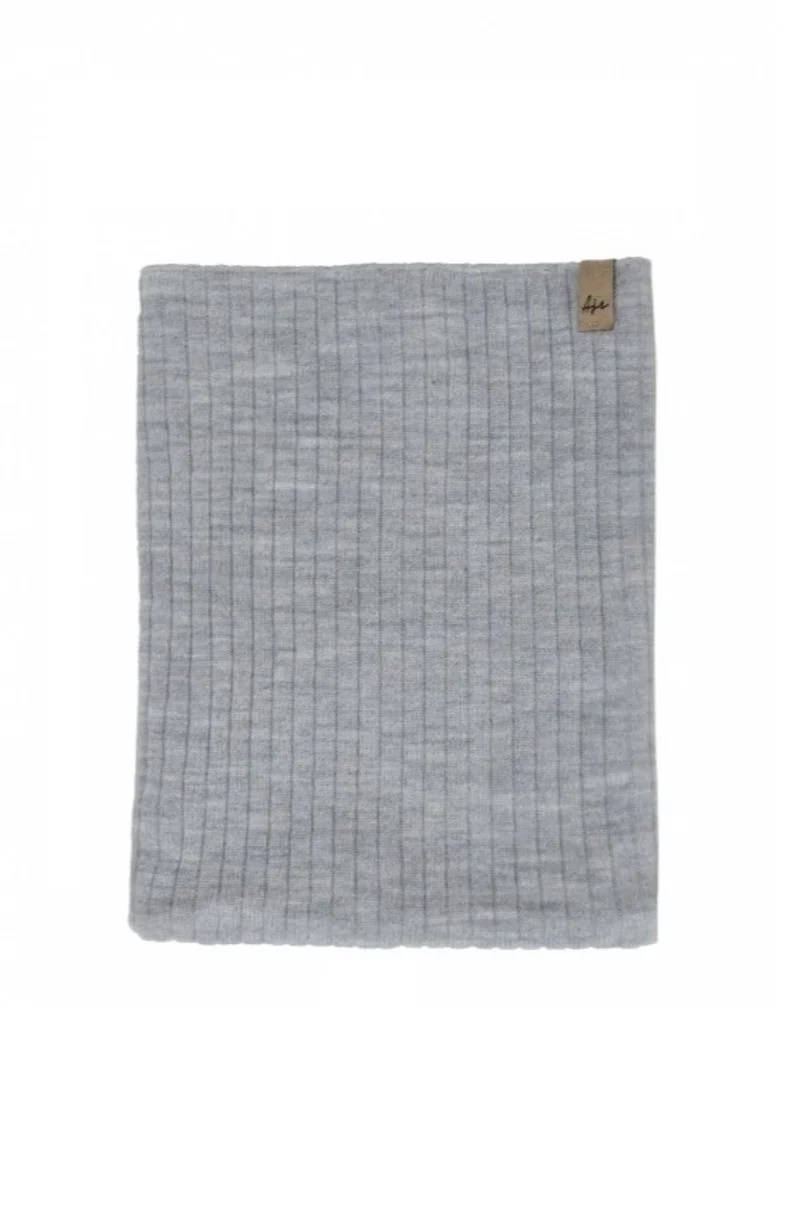 Dámská komínová šála. Model je poměrně dlouhý, což umožňuje jeho ohrnutí jako rolák. .