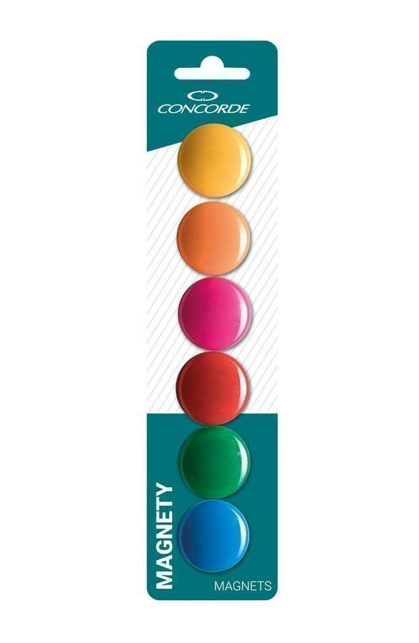 Barevné kulaté magnety o průměru koláče 30mm. Průměr vnitřního magnetu 1,5mm. Magnety jsou vhodné kdekoliv Vás napadne, například na nástěnky, flipcharty, tabule nebo i lednice. Balení obsahuje 6 kusů na blistru.