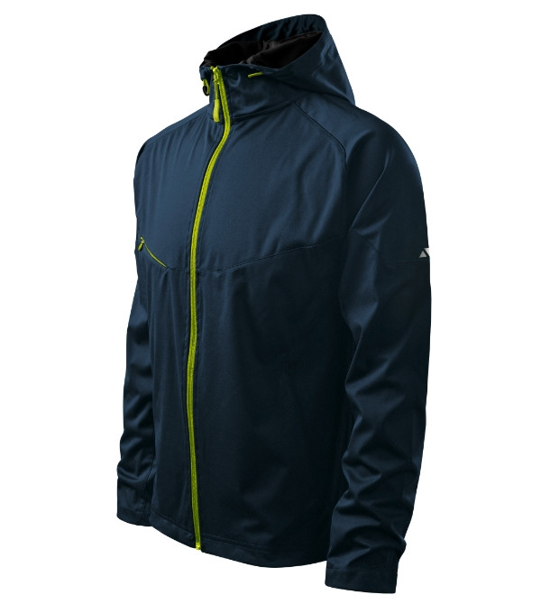 3vrstvý softshell s membránou celopropínací reverzní spirálový zip kapuce a dolní lem na stažení elastickou šňůrkou lemy rukávů nastavitelné suchým zipem lištové kapsy s reverzním spirálovým zipem náprsní kapsa se skrytým zipem v členícím švu tvarovaný a mírně prodloužený zadní díl kontrastní a reflexní prvky Údržbové informace pro softshellový materiál