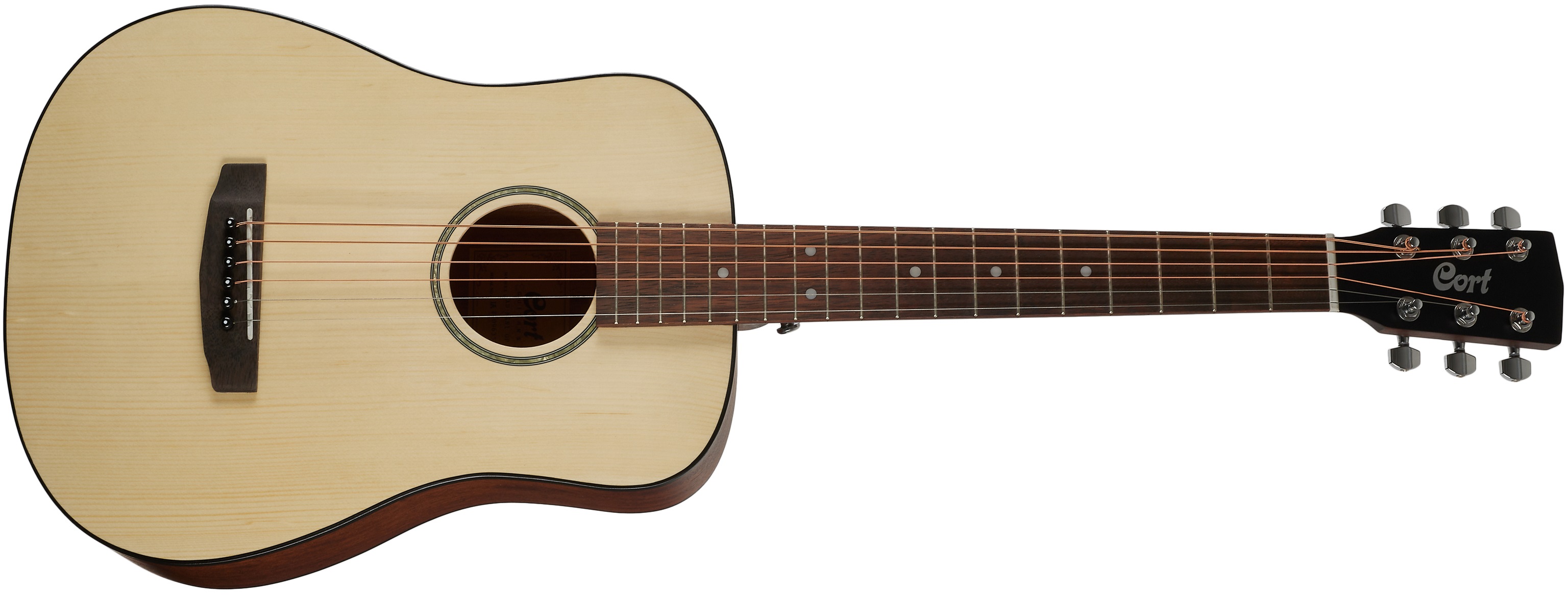 Dětská akustická kytara Cort AD Mini je akustická kytara typu Dreadnought s menším, tříčtvrťovým, tělem a kratší menzurou 578 mm. Hru na tento nástroj tak ocení děti nebo kytaristé se subtilnější postavou a drobnějšími prsty. Vrstvený korpus kytary je složen z přední smrkové desky a zadní deska a lubů z překližovaného mahagonu. K též mahagonovému krku je přilepen hmatník ze dřeva merbau osazený devatenácti pražci, orientaci po jeho ploše usnadňují poziční tečky. Uchycení strun ve speciálně tvarované kobylce