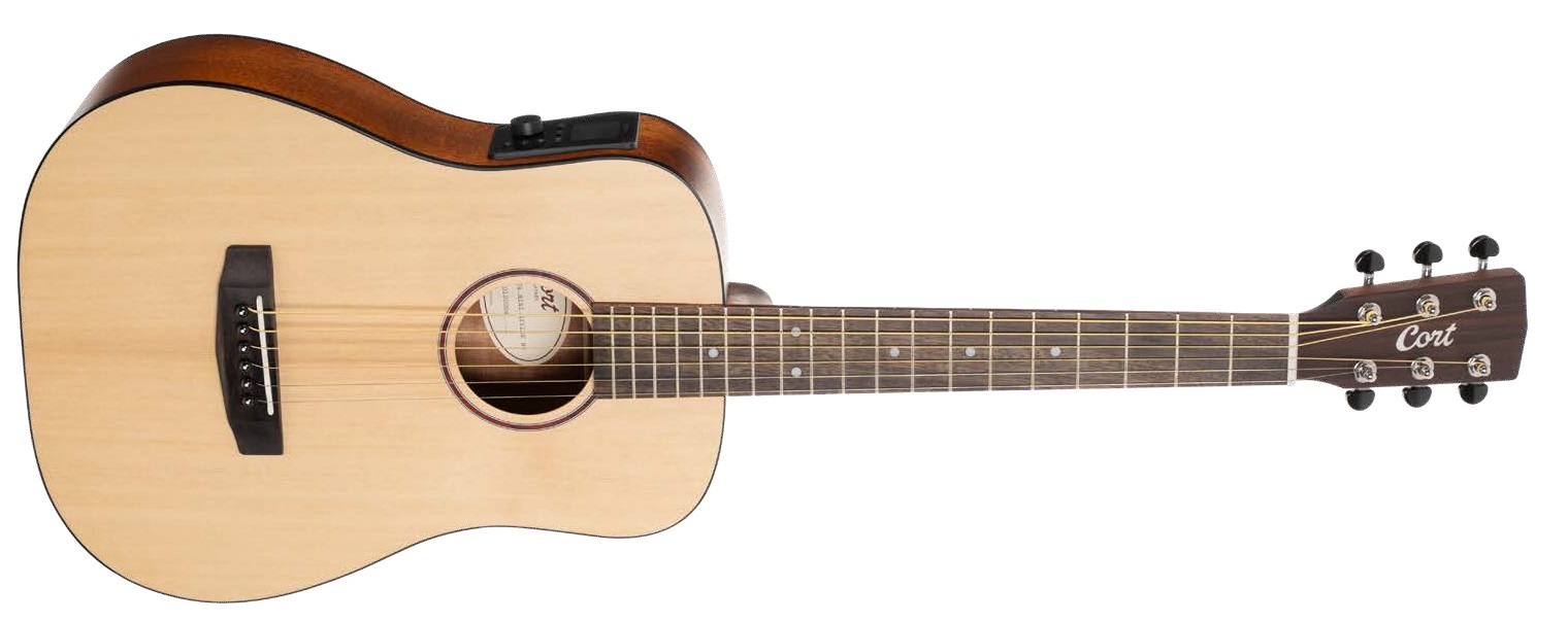 Elektroakustická kytara Kompaktní elektroakustické kytary Cort Earth GO nabízí nejen pohodlné tělo v 3/4 velikosti modelů Dreadnought, ale především moderní elektroniku HyVibe H2, která s chytrými funkcemi jako představuje efektový procesor, looper, ladička, metronom nebo kompatibilita s Bluetooth zcela mění pravidla hry. Přední deska kytary Earth GO OP je zhotovena z masivu smrku Sitka, zadní deska a luby jsou vyrobeny z vrstveného mahagonu. K mahagonovému krku je přilepen hmatník z fíkovníku osazený devat