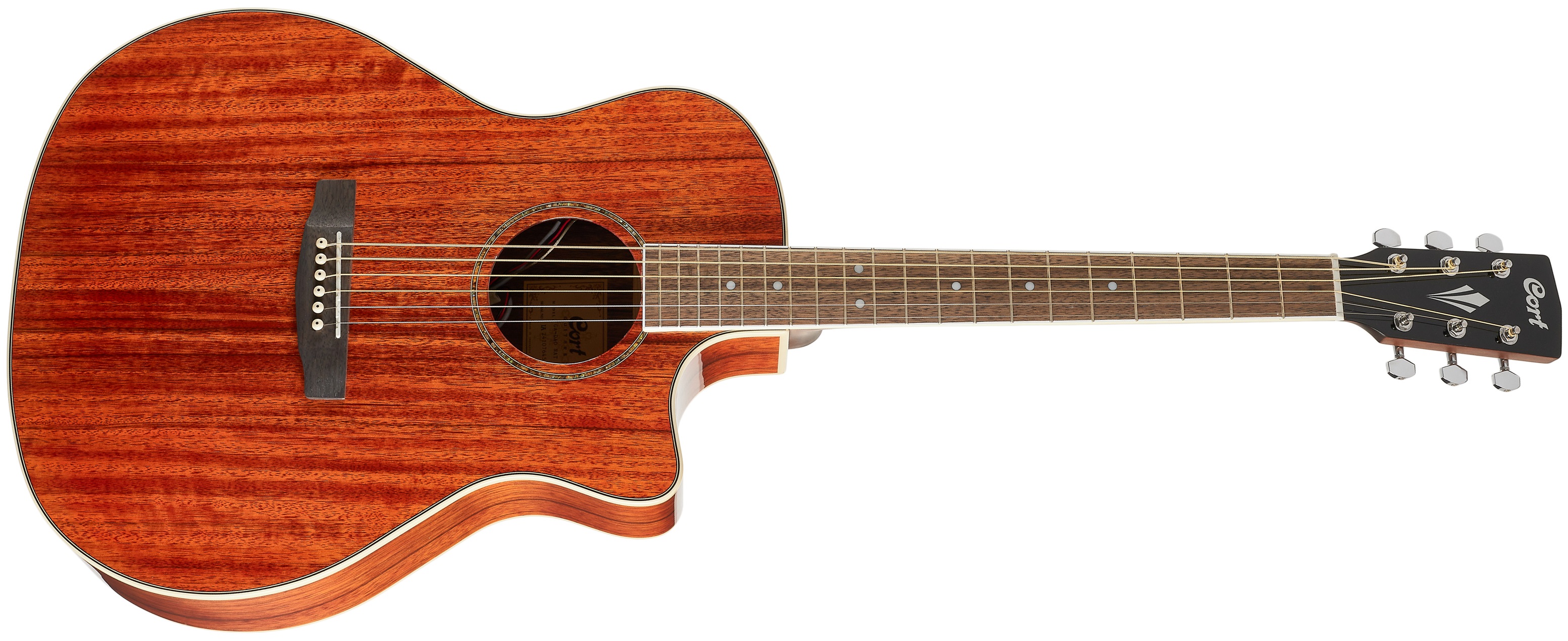 Elektroakustická kytara Řada Grand Regal značky Cort představuje kytary v populárním tvaru Grand Auditorium (velikostí na pomezí mezi většími typy Dreadnought a menšími Concert), které nabízí plný a vyvážený zvuk univerzálně vhodný pro hru prstovou technikou i trsátkem. Tělo elektroakustické kytary GA-DAO NAT je vyrobeno z vrstveného exotického dřeva dao/paldao. Povrchová úprava s otevřenými póry nechává vyniknout přirozenou kresbu dřeva. K mahagonovému krku je přilepen hmatník z fíkovníku osazený dvaceti p