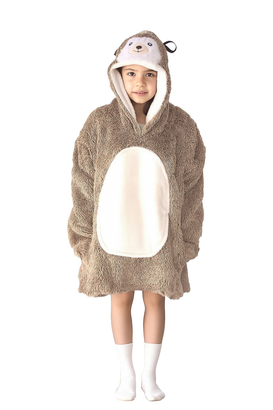 Velká mikina s kapucí s motivem zvířátka, která plní funkci teploučké, měkoučké a nadýchané deky, která zahřeje při každé příležitosti a navíc děti potěší svým hravým a líbivým designem. Vnitřek mikiny byl vyroben z hřejivého nadýchaného sherpa fleecu a lícová strana ze super měkkého hebkého materiálu, používaného na výrobu těch nejměkčích dek. Všechny mikiny z této řady mají i velikou přední kapsu, ve které se dají krásně ohřát studené ruce. Každé dítě se v ní bude jistě cítit pohodlně, ať už doma na gauči při sledování televize nebo odpočinku, nebo jen tak při hraní si, kdy ho nijak nebude omezovat v pohybu. Velmi praktická je ale i při stanování či jiných outdoorových aktivitách nebo jen tak při venkovním posezení na zahradě v chladnějším počasí. Tato mikina a deka v jednom je krásným a praktickým dárkem. V nabídce Cozy Noxxiez najdete v mnoha případech ve stejném designu i hřejivý plyšový polštář 3 v 1, obří hřejivý pantofel, nebo hřejivou deku s kapucí se zvířátkem a tlapkovými kapsami a můžete mít tak celou zahřívací sadu perfektně sladěnou. Stručný popis a doplňující informace: • praktická mikina a deka v jednom pro děti od 7 do 12 let • velká kapuce s motivem zvířátka • obří přední kapsa na zahřátí rukou • super měkký a nadýchaný hřejivý materiál pro maximální teplo a pohodlí • vnitřní i venkovní využití (gaučink, hraní, stanování atd.) • Rozměry: délka ke kolenům 80 cm, délka rukávu 48 cm, obvod hrudníku 120 cm • Velikost kapuce: výška 40 cm, šířka 36 cm • Velikost kapsy 30 x 40 cm • Materiál: flanel a sherpa fleece, vyrobené z polyesteru • Prát v pračce na 30 °C, sušit v sušičce na nízkou teplotu a ihned vyndat • Navrženo v Nizozemsku