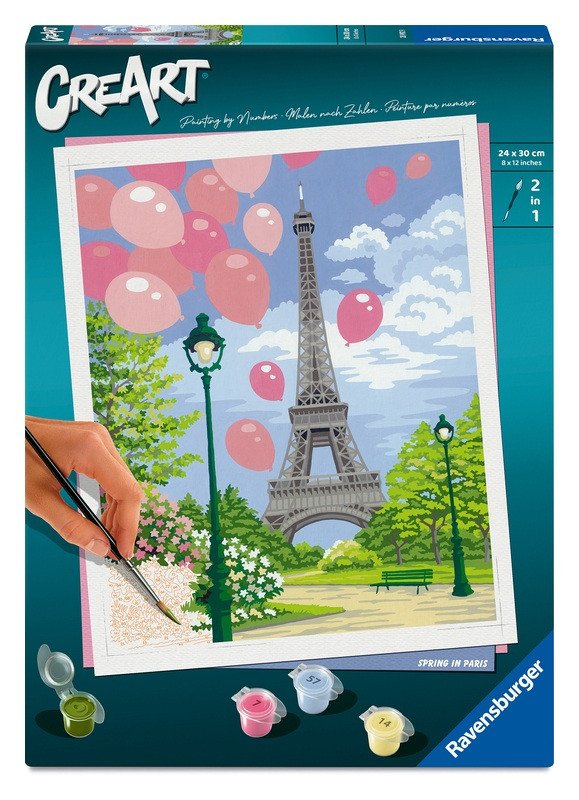 CreArt - to je kreativní zábava doslova pro každého. Staňte se na chvíli profesionálním malířem a namalujte si svůj vlastní obraz. Kouzelná Paříž v jarním oparu ozdobí každou zeď. Postupně vybarvujte jednotlivé plochy podle návodu (každé číslo na plátně odpovídá jedné konkrétní barvě) a dopřejte si radost z tvůrčí práce, u které se zabavíte na dlouhé hodiny. Malování je skvělá činnost, která nejen baví, ale také procvičuje zručnost, zlepšuje koncentraci a zaručuje spokojenost a pocit hrdosti všem umělcům. Set obsahuje vše, co potřebujete k malování: vysoce kvalitní, pevné plátno s obrazovou předlohou s očíslovanými plochami, sadu akrylových barev, štětec, kartonový stojánek pro kelímky s barvami a rámeček. Vykreslené plochy vytváří profesionálně vypadající umělecké dílo. Jakmile obraz dokončíte, nechte ho zaschnout a zarámujte ho do rámečku, který je součástí balení. Malování nikdy nebylo tak jednoduché.