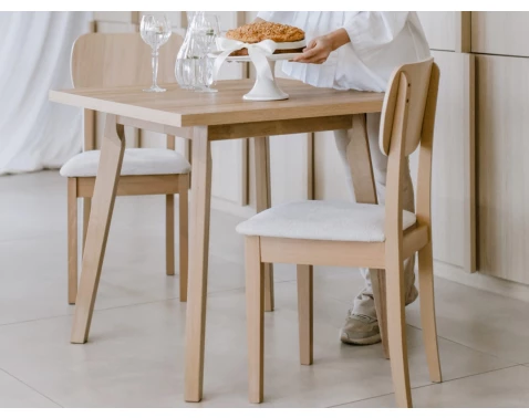 Klasický jídelní stůl o velikosti 80x80 cm v dekoru dub sonoma má čtvercový tvar a hodí se do každé kuchyně a jídelny.
