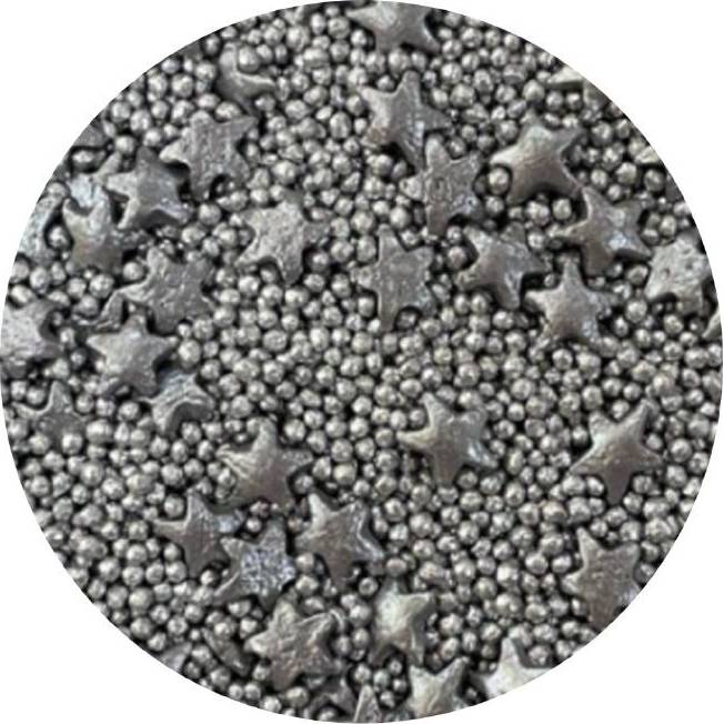 Cukrová zdobení metalická Stříbrné hvězdy mix 80g - I LOVE CAKES