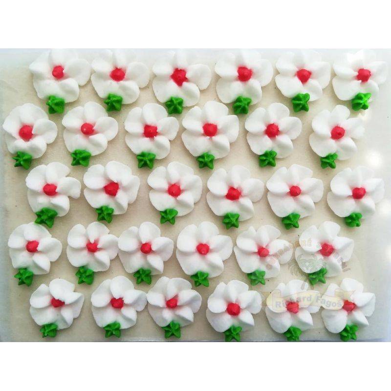 Cukrové květy bílé s červeným středem. Balení 30 ks.