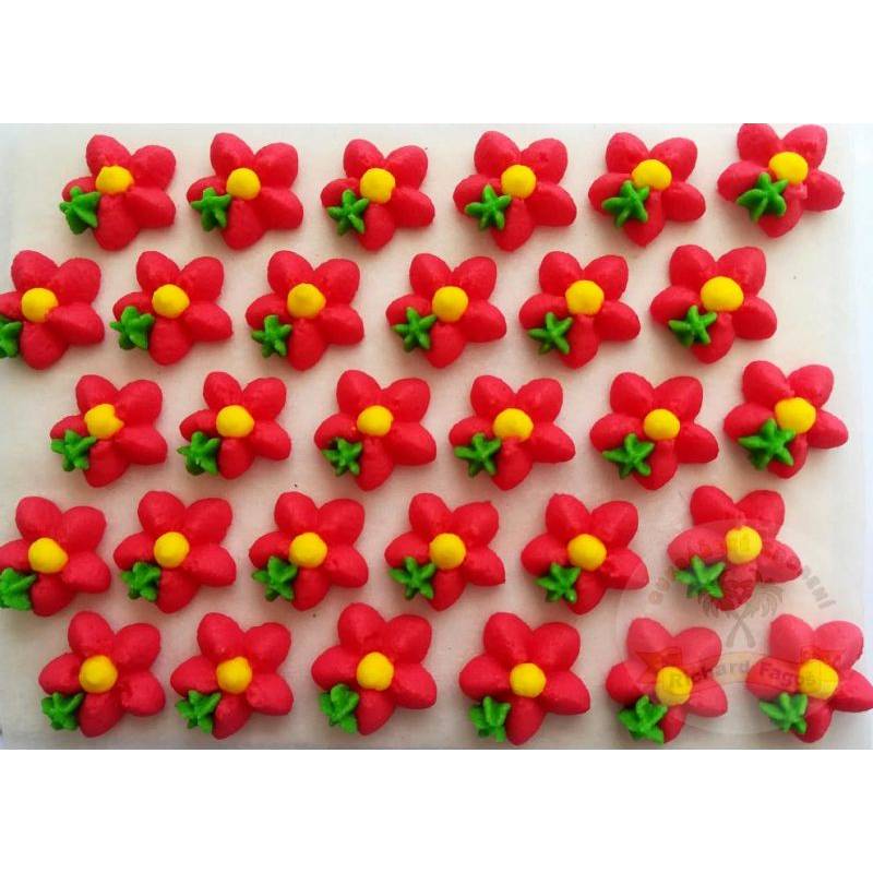 Cukrové květy červené se žlutým středem na platíčku 30ks - Fagos