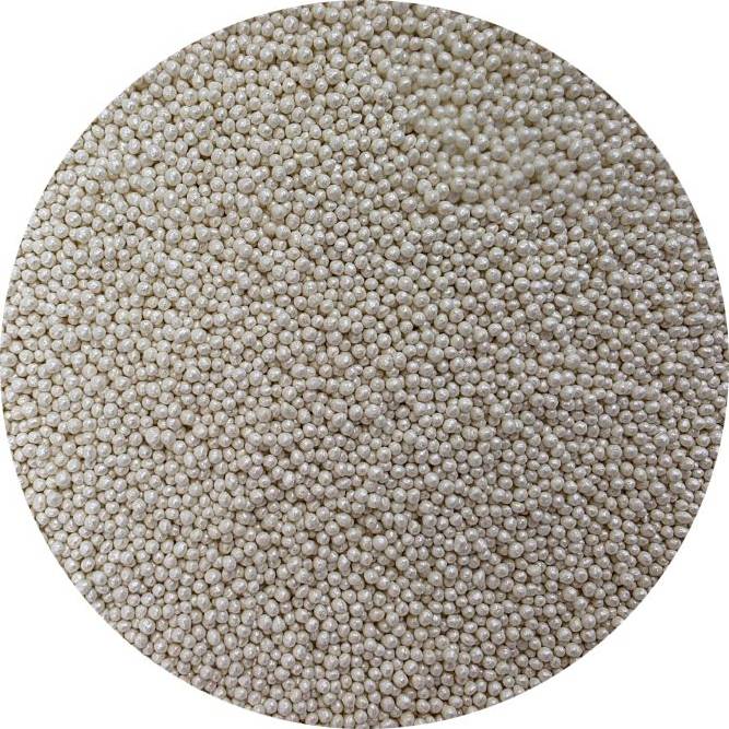 Cukrové perličky 2 mm bílé metalické. Balení 80 g.