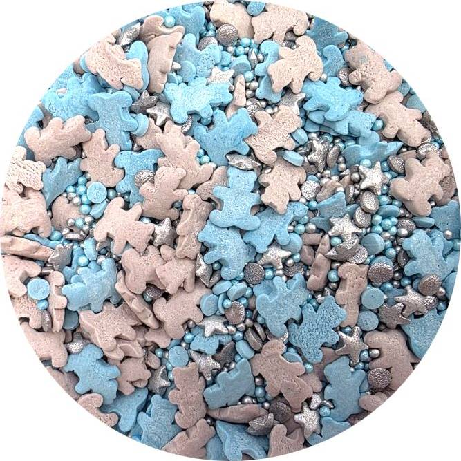 Cukrové zdobení modro-stříbrní medvídci. Balení 1 kg.