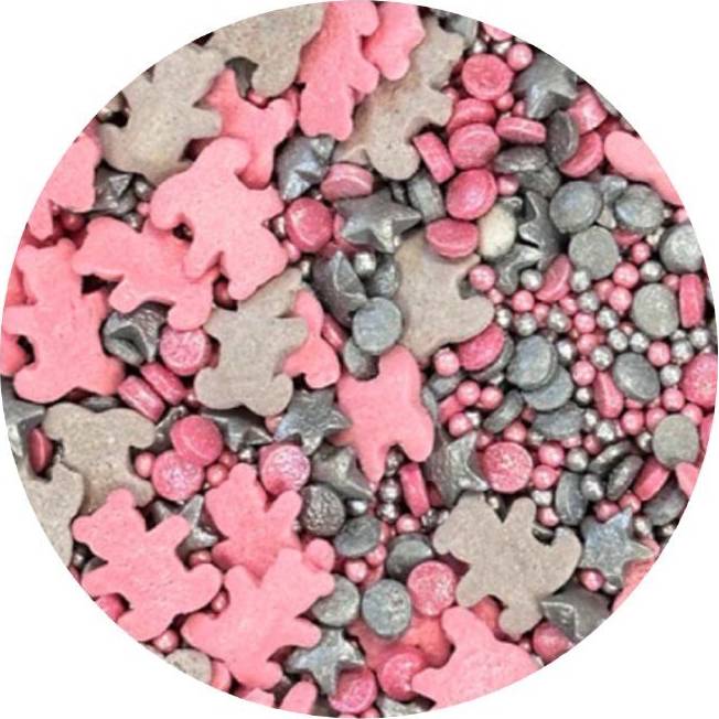 Cukrové zdobení růžovo-stříbrní medvídci 1kg - I LOVE CAKES