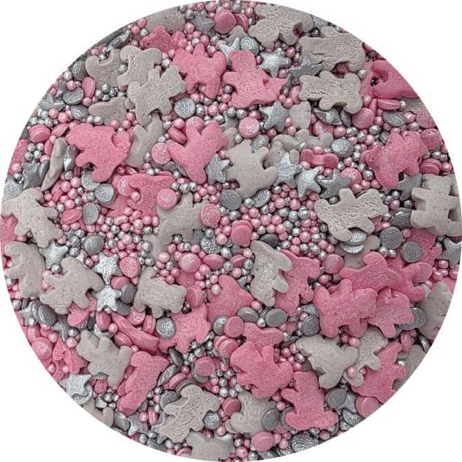 Cukrové zdobení Růžovo-stříbrní medvídci 80g - I LOVE CAKES