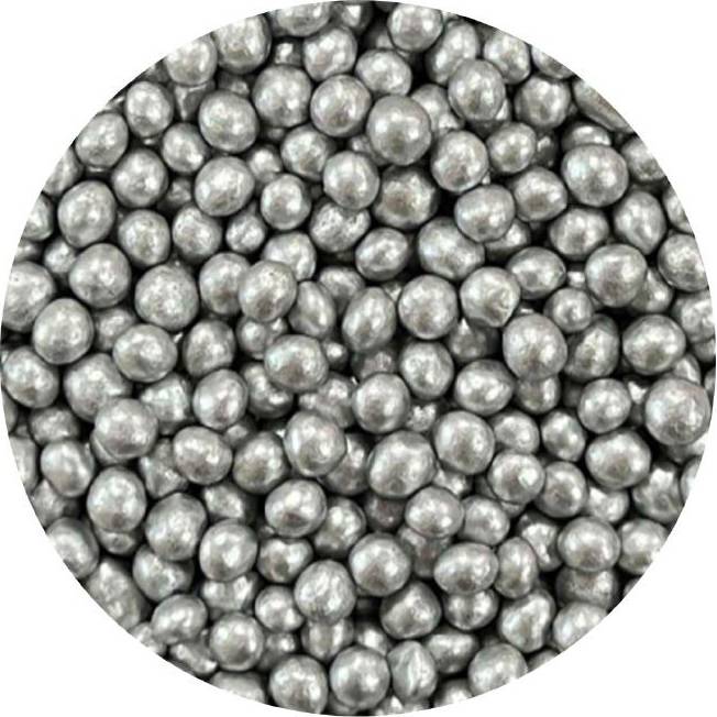 Cukrovo-rýžové perly stříbrné, velké 5 mm. Balení 1 kg.