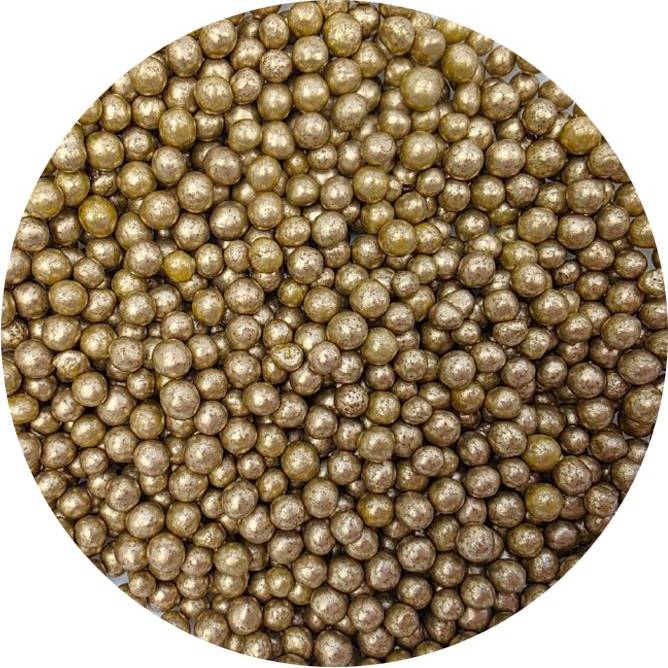 Cukrovo-rýžové perly zlaté, velké 5 mm. Balení 80 g.