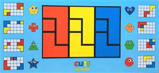 Cíl hry: hracími kameny vyplnit celou šachovnici kameny stejné barvy se smí dotýkat pouze rohy každá úloha má jedno řešení Obsah balení: Rozměr hrací desky 32 x 15 cm. Šachovnice má 6 x 4 pole. 3 karty s náhradními úlohami Příběh o Roboťácích - Jak stavěli most U této hry jsou použity tři druhy kamenů a tři barvy Popis a postup hry: vytáhneme hru z ochranného obalu sundáme hrací kameny ze šachovnice vybereme úlohu a sestavíme zadání na šachovnici zbývající hrací kameny umisťujeme na šachovnici podle základního pravidla CUTS - tj. cílem hry je vyplnit hracími kameny celou šachovnici - kameny stejné barvy se smí dotýkat pouze rohy. Ty úplně nejmenší děti mohou pro začátek zkoušet vyplnit celou šachovnici bez ohledu na základní pravidlo CUTS.