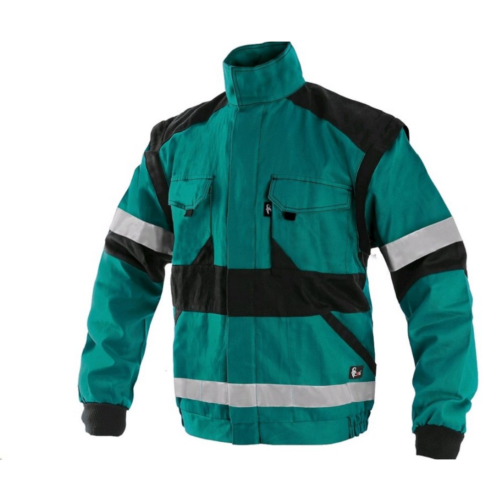 Montérková bunda LUXY BRIGHT pánská zeleno-černá Pánská montérková blůza, odepínací rukávy s pružnou manžetou, kryté zapínání na zip a suché zipy, náprsní kapsy s klopami, skrytá náprsní kapsa na zip, jednoduché boční kapsy, pas na bocích do gumy, reflexní pruhy. Doporučené použití: strojírenství, stavebnictví, lehký průmysl, automobilový průmysl, logistika, skladová manipulace, spedice, autoservisy, údržba, montáže, zemědělství, zahrada, hobby. Barva Zeleno-černá Materiálové složení 100% bavlna Rozdělení Pánské Gramáž 260 g/m2 Normy EN ISO 13688 Velikost 46-64 Montérková kolekce CXS LUXY BRIGHT Kategorie Blůzy