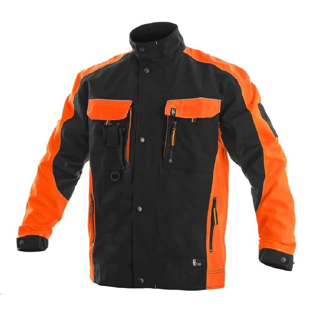 Montérková bunda SIRIUS BRIGHTON reflexní doplňky černo-oranžová - pánská blůza - rukáv s nastavitelnou manžetou - kryté zapínání na zip a druky - multifunkční náprsní kapsy - boční kapsy na zip - reflexní doplňky - Normy: EN ISO 13688 - Gramáž: 270 g/m2 - Barva: černo-oranžová - Materiálové složení: 65% polyester, 35% bavlna - Velikost: 46-64