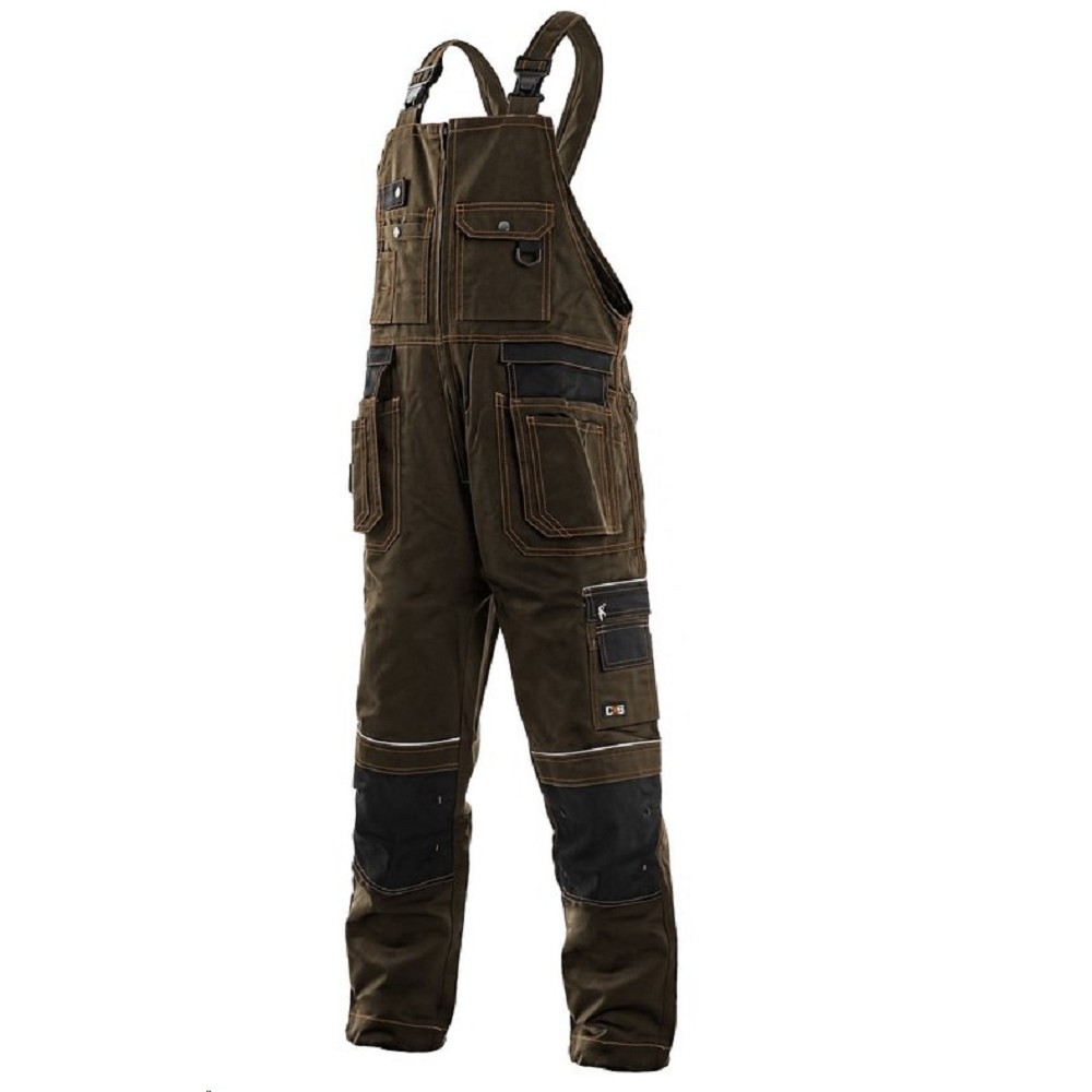 Montérkové kalhoty ORION KRYŠTOF pánské laclové 60% bavlna, 40% polyester hnědo/černé Pánské kalhoty s náprsenkou, zdvojená kolena s možností vložení kolenních výztuh, klínové přední kapsy a našité kapsy na zip s poutky na nářadí, boční multifunkční kapsy, náprsenka s kapsami a rozepínáním uprostřed, reflexní doplňky. Barva hnědo/černé Materiálové složení 60% bavlna, 40% polyester Gramáž 280 g/m2 Normy EN ISO 13688 Velikost 46-64