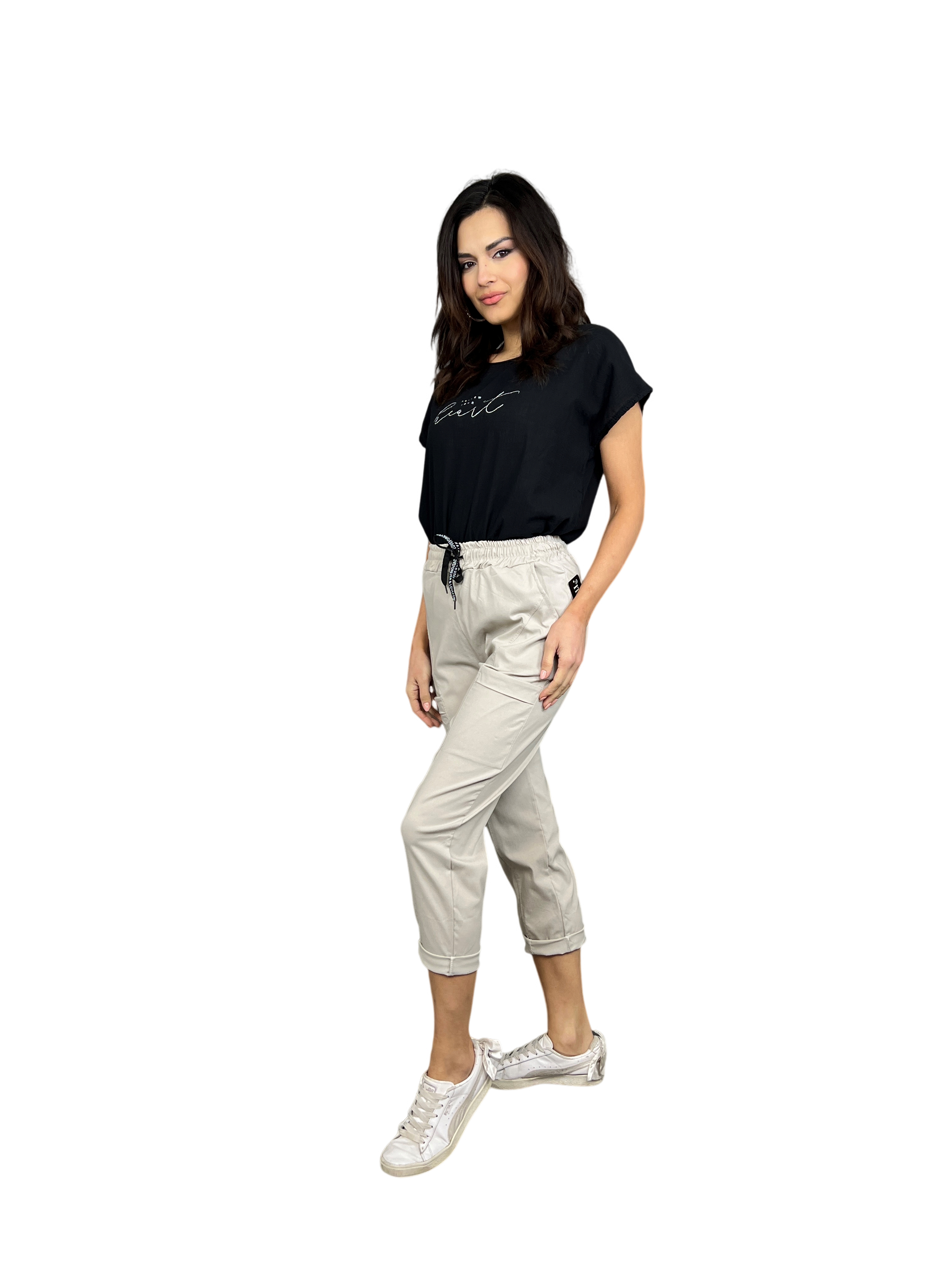 Tkanička ke stažení v pase spolu s gumou zajistí pohodlné a přizpůsobitelné nošení. Můžete si tak snadno nastavit pás podle svého pohodlí a preference.