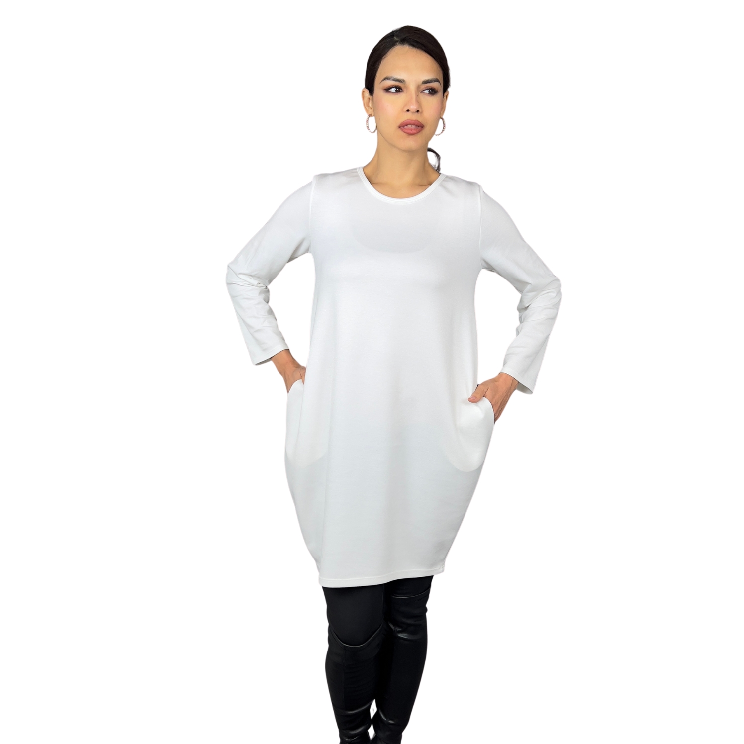 Dámské šaty Kelis jsou skvělou volbou pro ženy, které hledají jednoduchý, ale stylový kousek pro každodenní nošení. Volný střih s mírně balónovým efektem poskytuje maximální pohodlí a lichotivě sedí na různých typech postavy. Dlouhé rukávy a kulatý výstřih podtrhují jejich nadčasový vzhled, zatímco praktické boční kapsy dodávají šatům ležérní nádech.