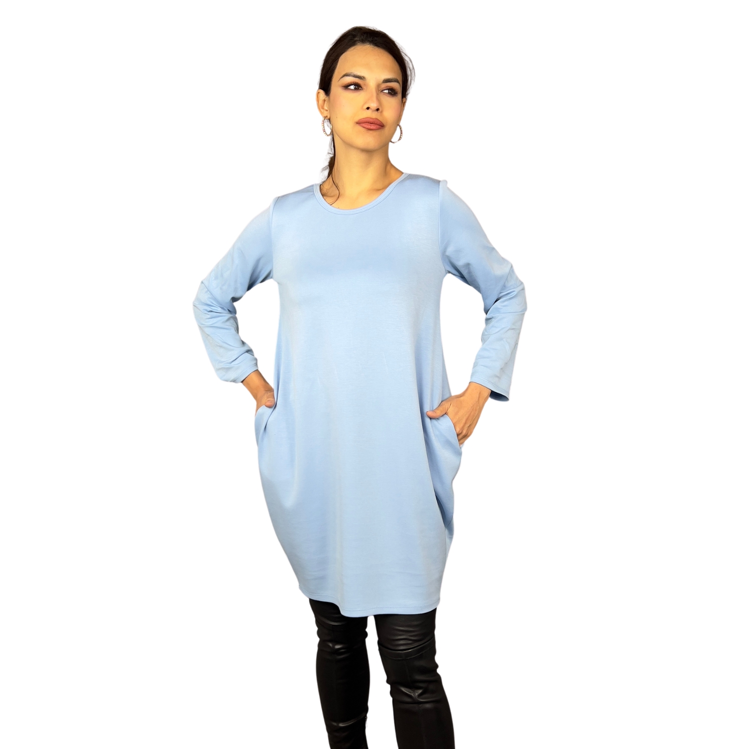 Dámské šaty Kelis jsou skvělou volbou pro ženy, které hledají jednoduchý, ale stylový kousek pro každodenní nošení. Volný střih s mírně balónovým efektem poskytuje maximální pohodlí a lichotivě sedí na různých typech postavy. Dlouhé rukávy a kulatý výstřih podtrhují jejich nadčasový vzhled, zatímco praktické boční kapsy dodávají šatům ležérní nádech.