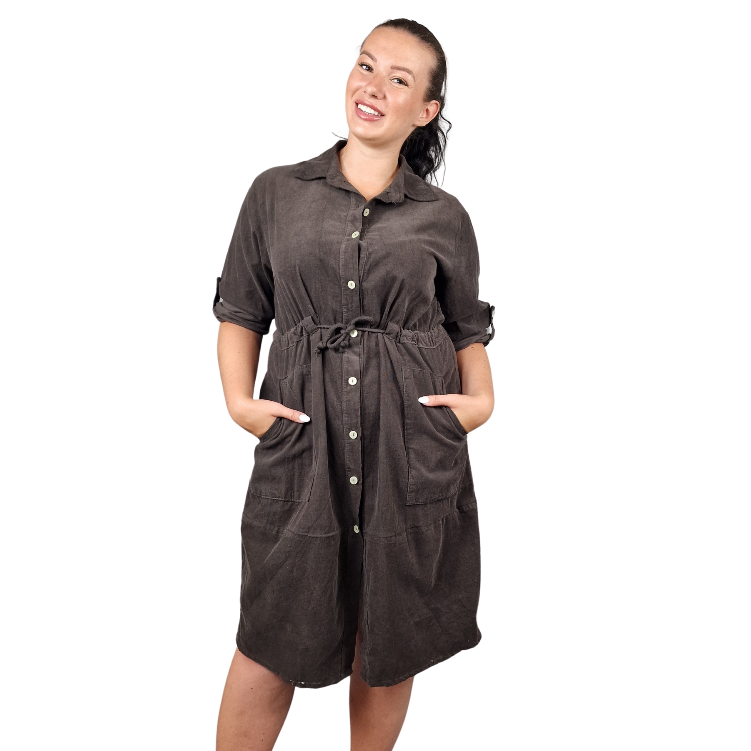 Košilové šaty Gloria jsou ideálním spojením elegance a pohodlí. Díky jejich volnějšímu střihu se budete cítit uvolněně po celý den, aniž byste museli dělat kompromisy ve stylu. Šaty jsou vybaveny knoflíky po celé délce, což jim dodává klasický a elegantní vzhled. Navíc mají praktické kapsy, které nejen zdůrazňují jejich neformální charakter, ale také přidávají šatům funkčnost. Šňůrka v pase umožňuje přizpůsobit šaty na míru, což zaručuje, že vám vždy dokonale padnou.