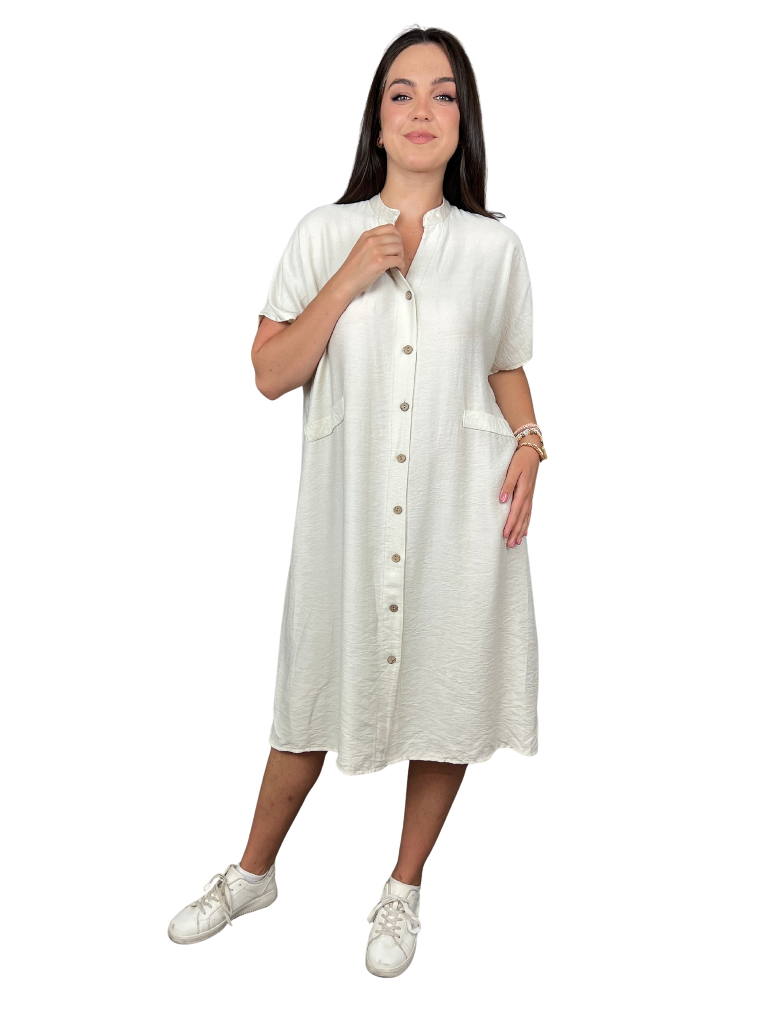 Šaty Tessa jsou důkazem, že jednoduchost může být stylová. Minimalistický stojáček a knoflíky po celé délce tvoří pohodlný outfit, který oceníš v práci i ve volném čase.