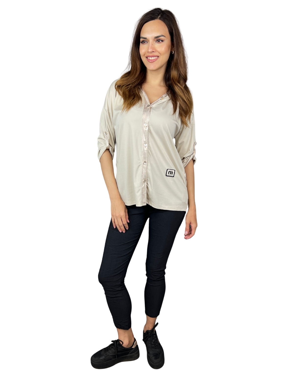 Styling tip: Noste ji rozepnutou přes top nebo tílko, případně samostatně jako ležérní tuniku. Skvěle ladí se sportovní obuví i espadrilkami.