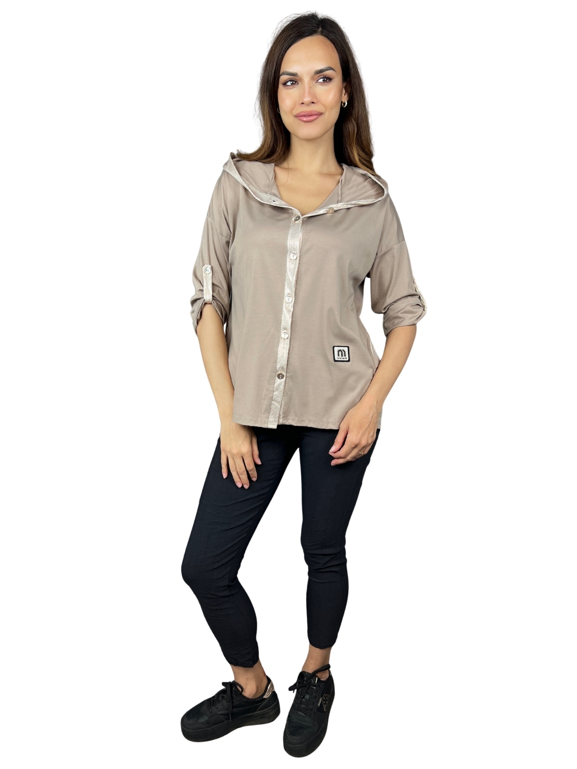 Styling tip: Noste ji rozepnutou přes top nebo tílko, případně samostatně jako ležérní tuniku. Skvěle ladí se sportovní obuví i espadrilkami.