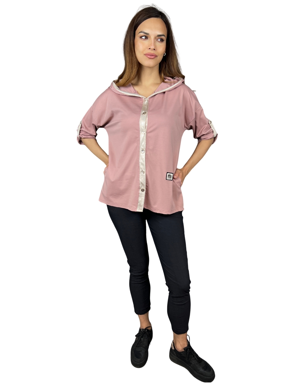 Styling tip: Noste ji rozepnutou přes top nebo tílko, případně samostatně jako ležérní tuniku. Skvěle ladí se sportovní obuví i espadrilkami.