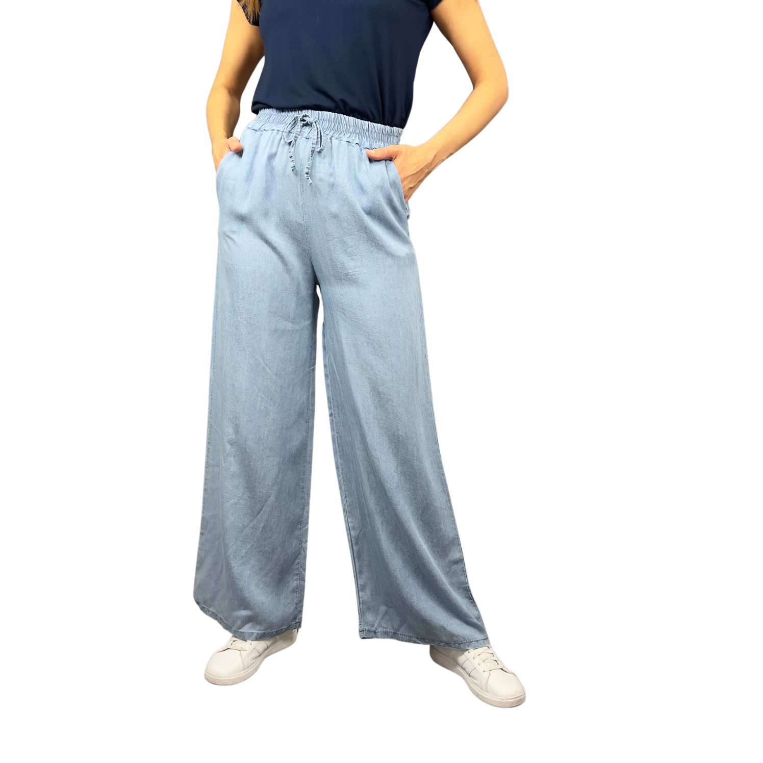 Dopřejte si pohodlí a lehkost s riflovými kalhotami Ocean, které spojují moderní styl s maximálním komfortem. Jejich volný, široký střih a světlý denimový odstín z nich dělají ideální kousek pro každodenní nošení – ať už vyrazíte do města, na procházku nebo do práce. Pružný pas se stahovací šňůrkou zajistí perfektní přizpůsobení postavě a zároveň pohodlí po celý den.