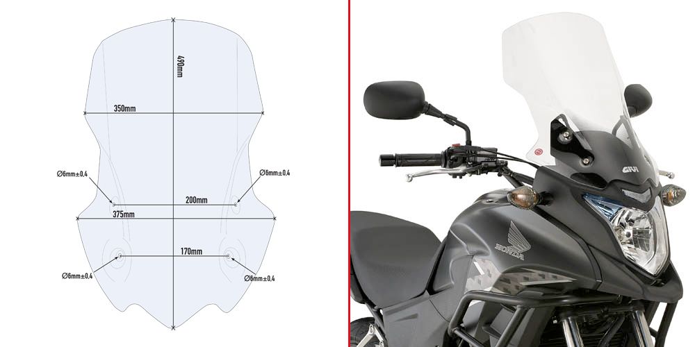 D1121St plexi čiré Honda CB 500 X (13-18), vxš490x350 mm, o 190 mm vyšší než originál