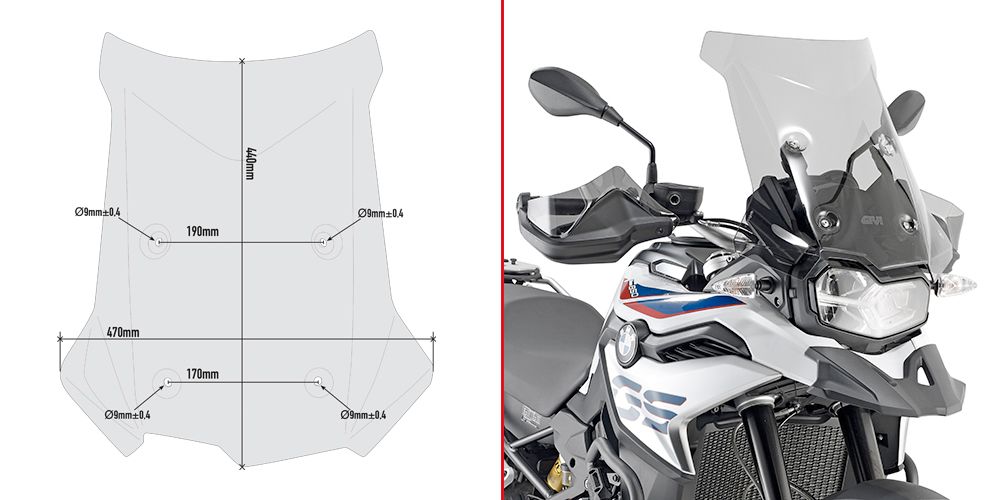 O 17 cm vyšší než originální plexi. Nahrazuje originální plexi, použijte stávající spojovací materiál. Lze montovat i na model F 800 GS (24-25).