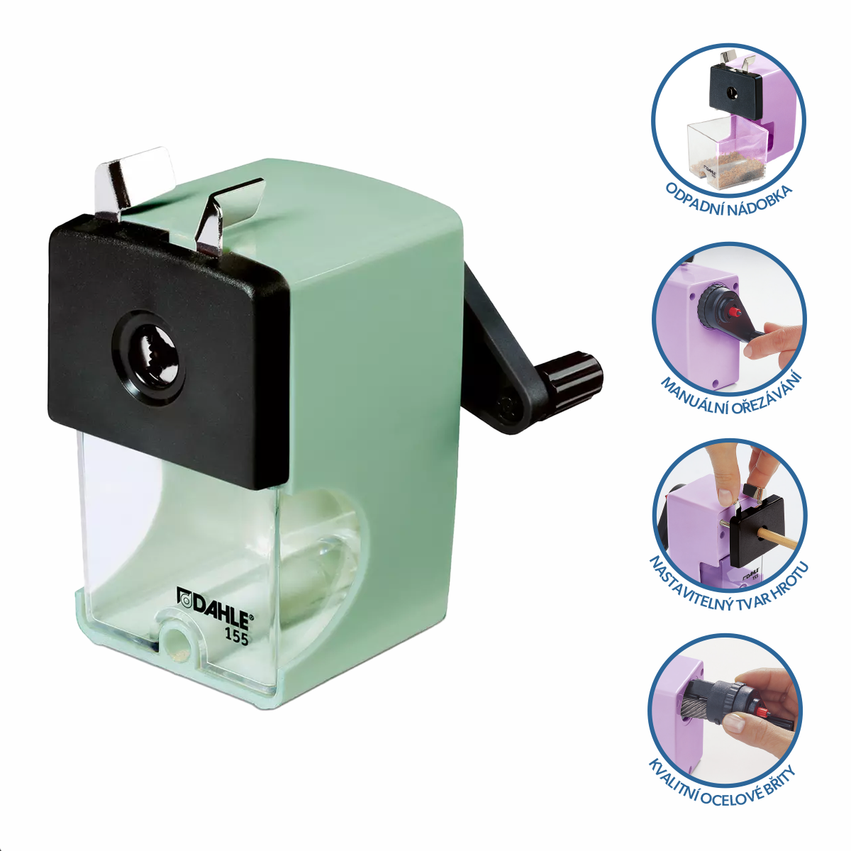 Mechanické ořezávátko s kvalitními ocelovými noži a nastavitelným tvarem hrotu. Snadná a rychlá výměna frézovací jednotky, velkokapacitní průhledná odpadní nádoba. Pevná svorka pro stabilní upevnění ořezávátka ke stolu. Moderní vzhled, svěží barvy.max. Ø tužky: 12 mmbarva: mátově zelenákvalitní ocelový nůž pro profesionální výsledkymanuální pohon, nastavitelný tvar hrotusvorka pro stabilní upevnění ke stoluvelkokapacitní odpadní nádobamateriál krytu: plastobsah balení: 1 ks