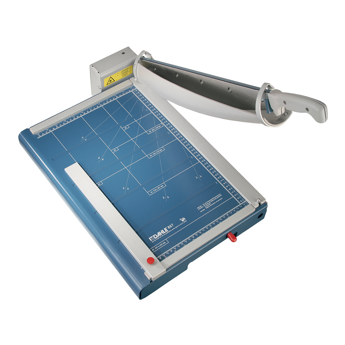 Profesionální páková řezačka pro každodenní použití. Samo-ostřící vysoce kvalitní nože Solingen pro stálou kvalitu řezu. Ocelové zpevnění hřbetu nože zaručuje stabilitu a přesnost řezu. Vyměnitelný, brousitelný horní i spodní nůž. Stabilní kovový stůl s neklouzavými pryžovými podložkami pro komfortní provoz. Bezpečný automatický kryt poskytuje spolehlivou ochranu a volný výhled na řeznou hranu. Natištěné úhly a DIN formáty usnadňují přesné vyrovnání řezaného materiálu. Dva příložníky s dělením v mm a nastavitelným zadním dorazem pro fixaci řezaného materiálu a přesný řez 90°. Odpojitelný automatický přítlak pro materiály citlivé na tlak. Praktické úchyty pro přenos. Ergonomicky tvarovaná rukojeť zajistí pohodlné řezání. Lze dokoupit: laserový paprsek (795), přední stůl s magnetickým zásuvným spojem (794) a přední doraz (793). Vyrobeno v ČR.DIN: A3, délka řezu: 460 mmvýška řezu: 3,5 mm/35 listů papíru (80 g/m2)rozměry stolu: 513 x 365 mmstabilita a přesný řez díky ocelovému zpevněníprodloužená záruka 5 let2 úhlové příložníky s dělením v mm pro přesný řez 90°, natištěné formáty a úhlyváha: 11,7 kgobsah balení: 1 ks